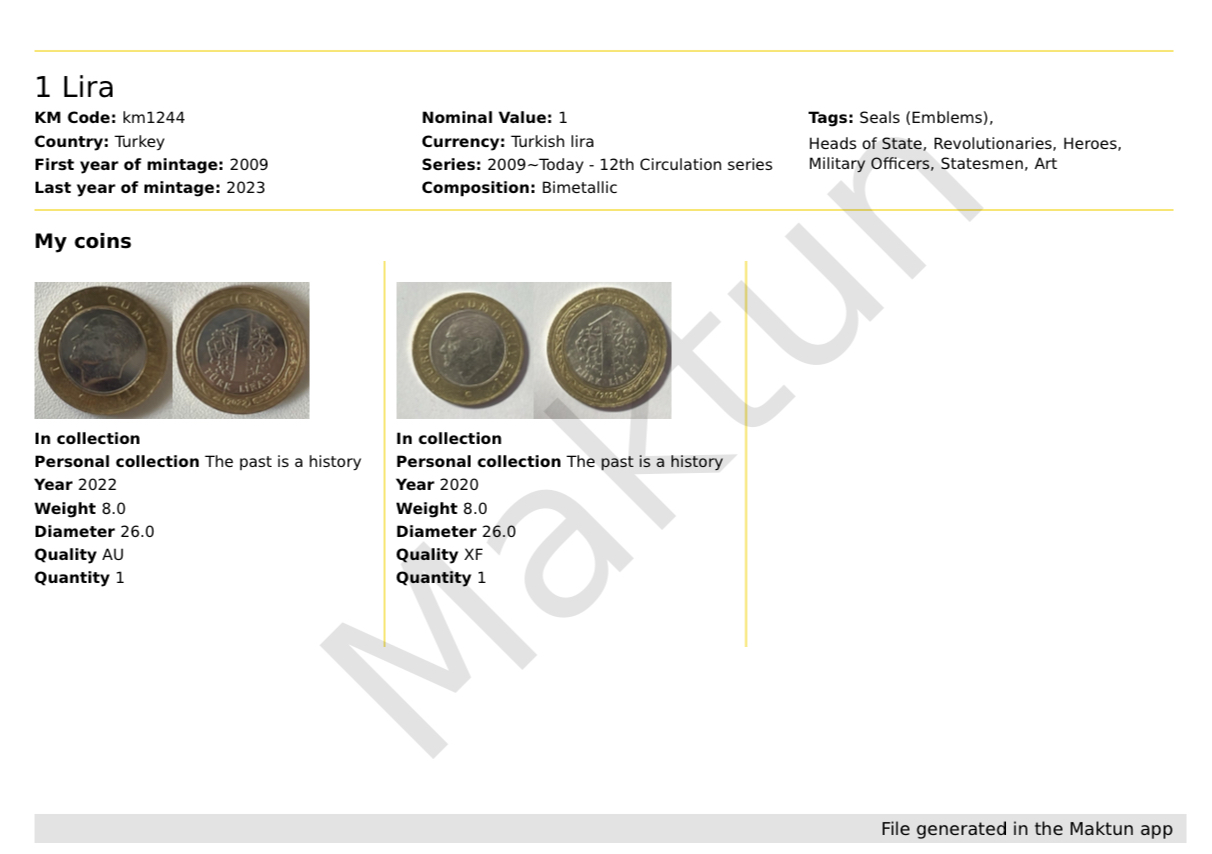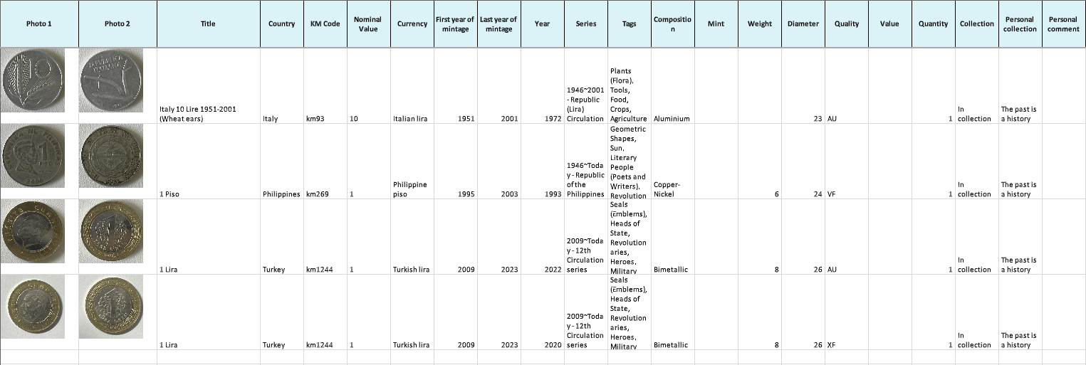 - Export your data to PDF, XLS, or CSV formats, with a generous limit of 100 coins and banknotes.