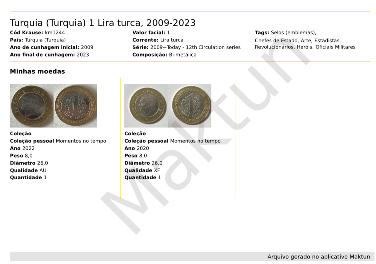 - Exportar seus dados para os formatos PDF, XLS ou CSV, com um limite generoso de 100 moedas e cédulas.